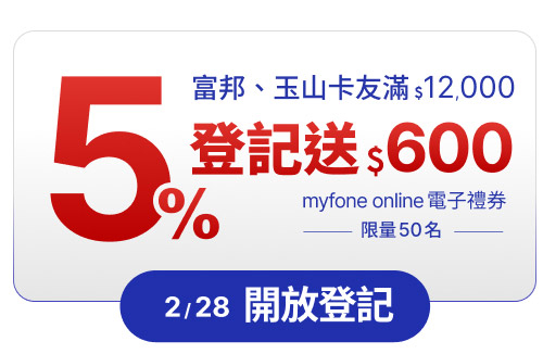 一、指定銀行卡友滿額登記送600元 myfone online電子禮券(限量50名)