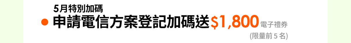 - 全月申請電信方案加碼,登記送 $1,000 (myfone online電子禮券),限量前10名。