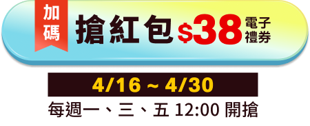 - 2026/4/16 ~ 2026/4/30,每週一、週三、週五12:00起