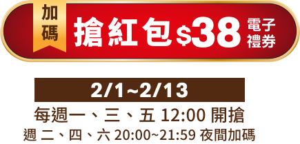 • 每日00:00~19:59前進行抽獎,贈品電子禮券將於隔日匯入得獎者帳戶(舉例:2/6 11:50遊戲將於2/7收到);20:00~23:59之間遊戲則於再次日後匯入得獎者帳戶(舉例:2/6 20:30簽到,將於2/8收到)。有效期限為匯入日後3天內,逾期未使用完畢即失效,且不得作轉讓/延遲/折現或為其他請求。