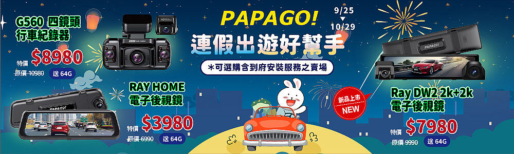 PAPAGO RAY Home 2K 星光夜視 WIFI TS碼流 電子後視鏡 行車紀錄器(GPS測速提醒/WIFI/前後雙錄)-贈64G