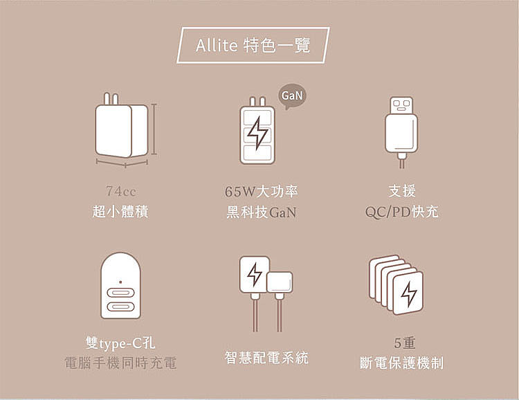 Allite GaN 65W 氮化鎵雙口 USB-C 快充充電器