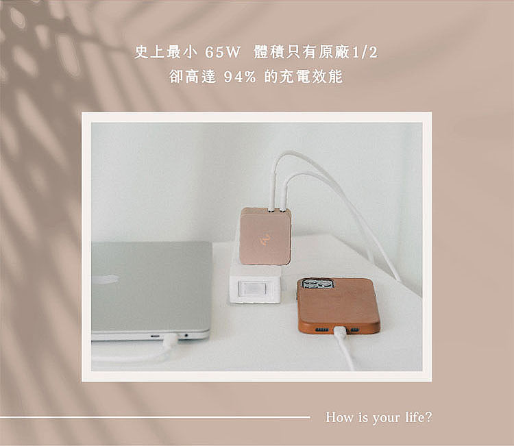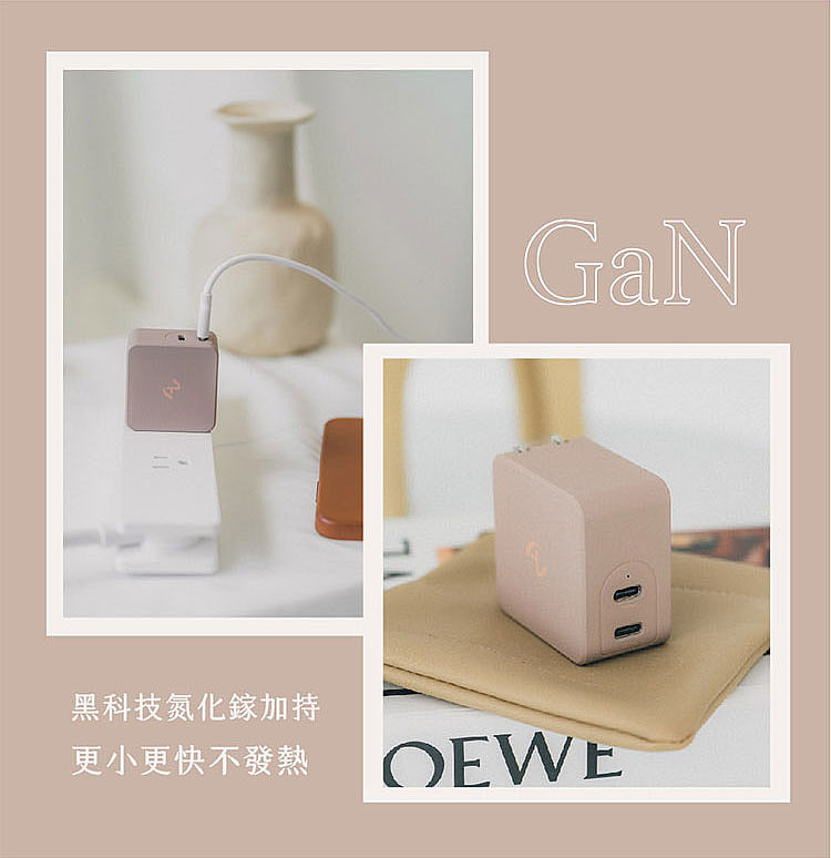 氮化鎵讓充電器體積更小,變小的同時,還可以推持充電效能,也比以前更不易發熱配有 2 個 USB-C 充電孔