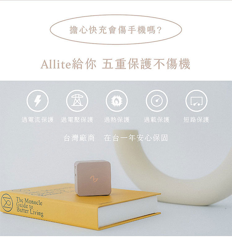 Allite 具有「過電流保護、過電壓保護、過熱保護、過載保護、短路保護」等五種充電保護機制,