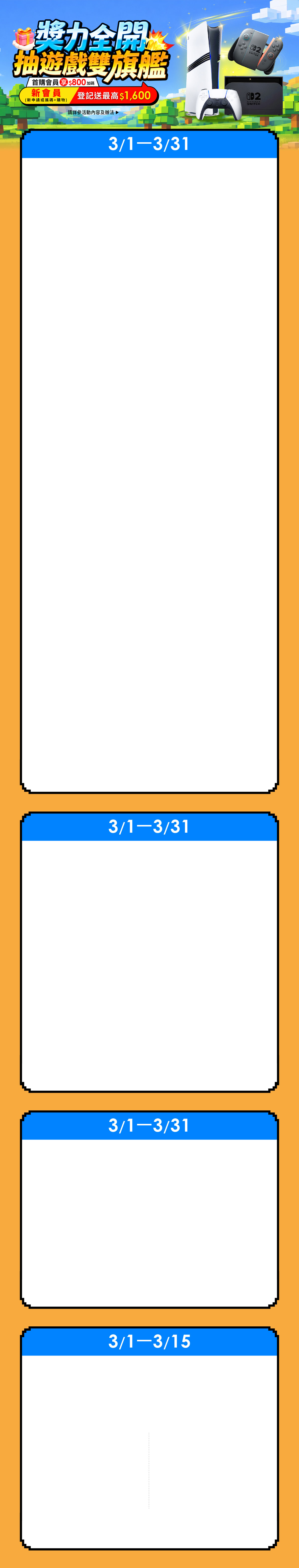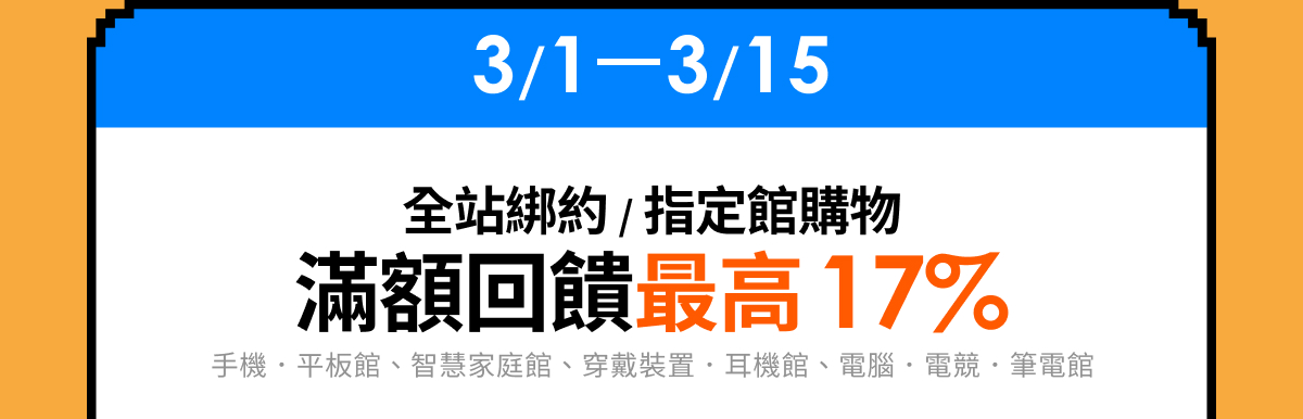 【獎力全開 抽遊戲雙旗艦】3/1-3/15 全站綁約/指定館購物滿額登記回饋最高17%