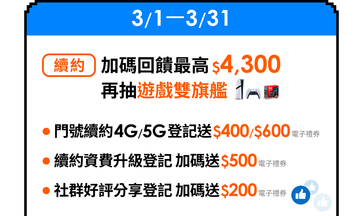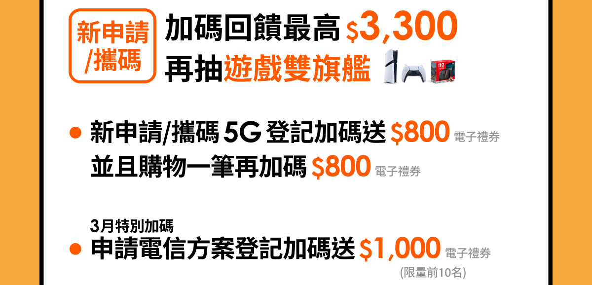 【獎力全開 抽遊戲雙旗艦】配門號/購物滿額 登記抽旗艦遊戲主機