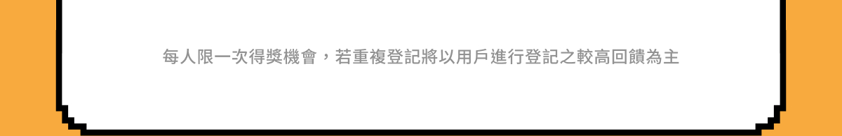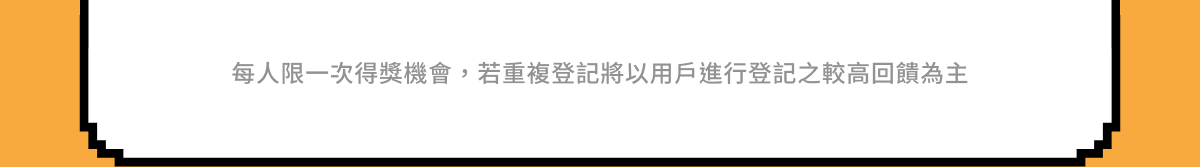 - 為維護參加者權益及辦理活動之公平性,本活動參加者若透過系統漏洞或非法手段(異常帳號建立、惡意程式等類似行為)參與本活動,將取消其資格,並視情節限制該帳號當下與日後之購買及活動參加權利。