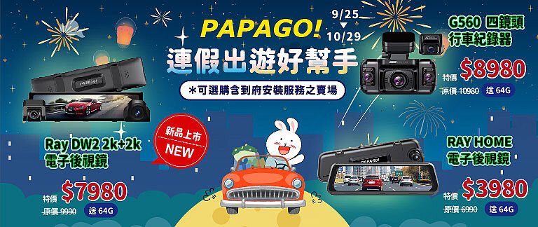 PAPAGO RAY Home 2K 星光夜視 WIFI TS碼流 電子後視鏡 行車紀錄器(GPS測速提醒/WIFI/前後雙錄)-贈64G
