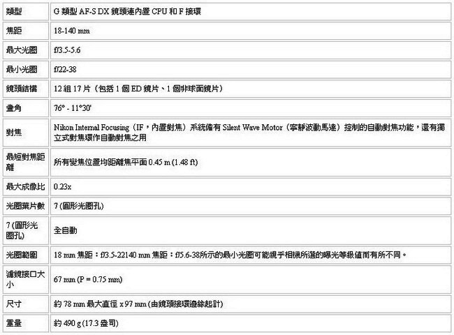 Nikon AF-S DX NIKKOR 18-140mm F3.5-5.6 G ED VR*(平輸-白盒)