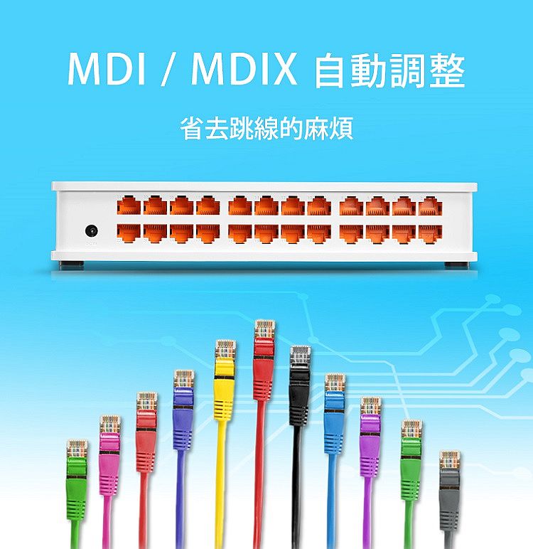 支援MDI / MDIX自動調整,省去跳線的麻煩