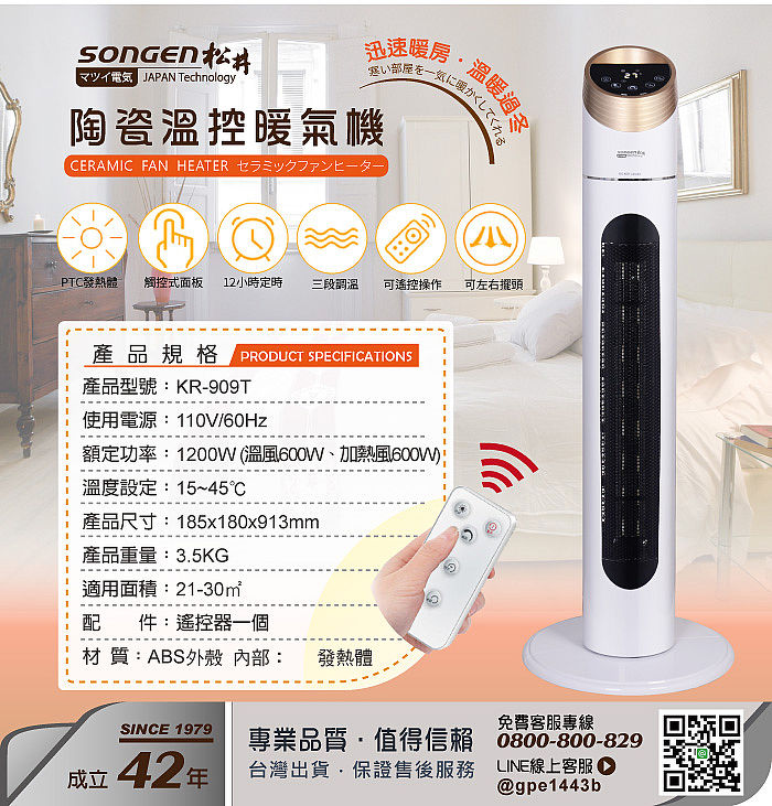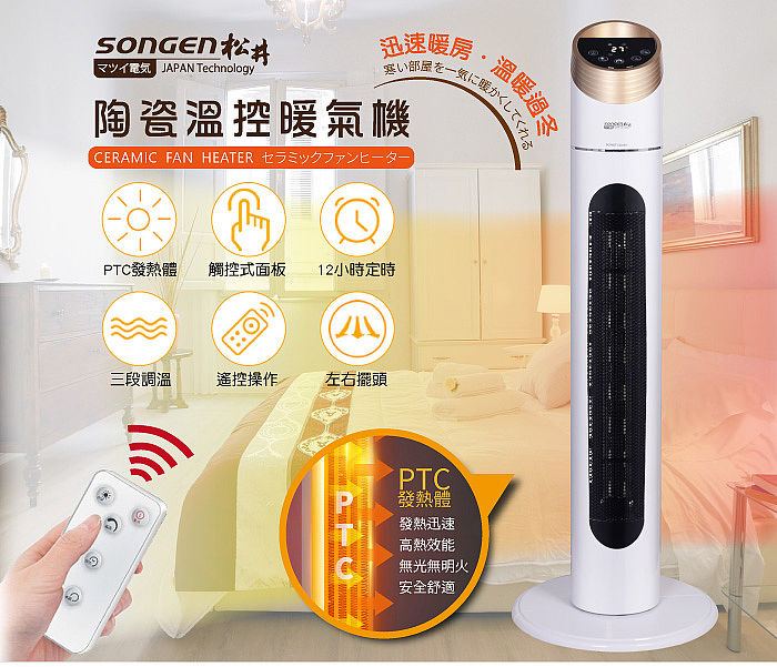SONGEN松井 松井陶瓷溫控立式暖氣機/電暖器(KR-909T).