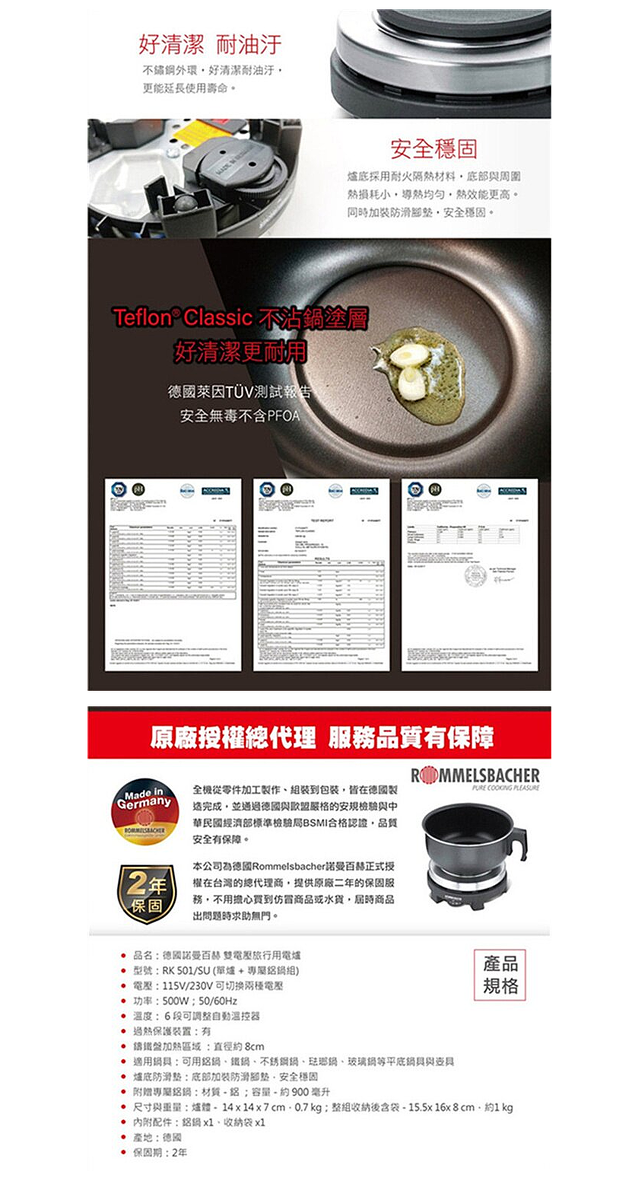 正宗德國製造空姐鍋 諾曼百赫 德國ROMMELSBACHER 可支援115/230V 雙電壓