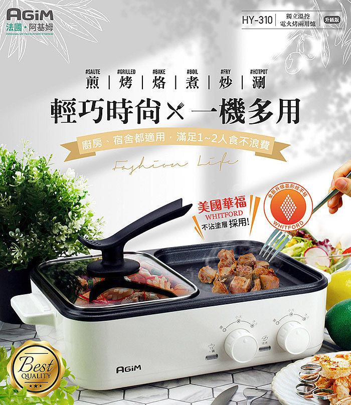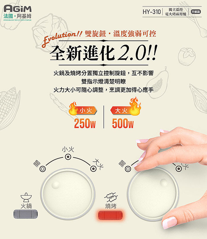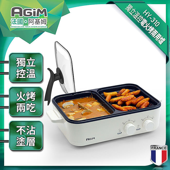 ● 火鍋+烤盤獨立溫控,雙旋鈕分區加熱