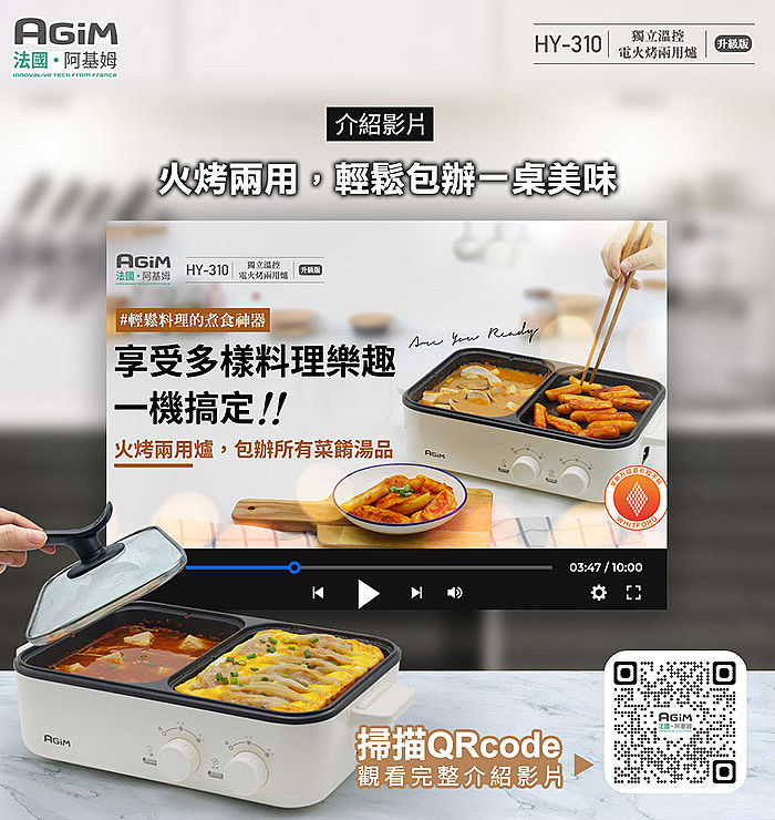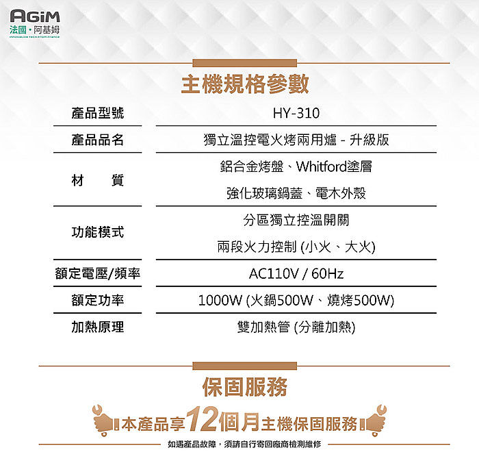➤額定功率:1000W(火鍋500W、燒烤500W)