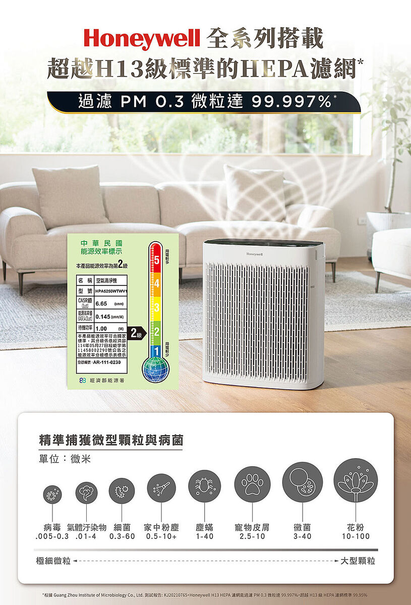 HEPA 13級濾網四重過濾 CASR 3.83 一級能效 WIFI智能遠端遙控