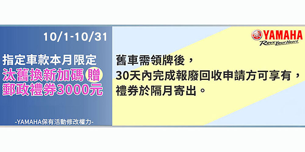 5月份母親節 YAMAHA 加送微壓鍋 限領牌完成