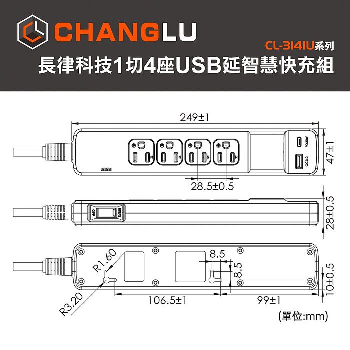 ●本體尺寸:長249mmx寬47mmx高28mm(公差省略)