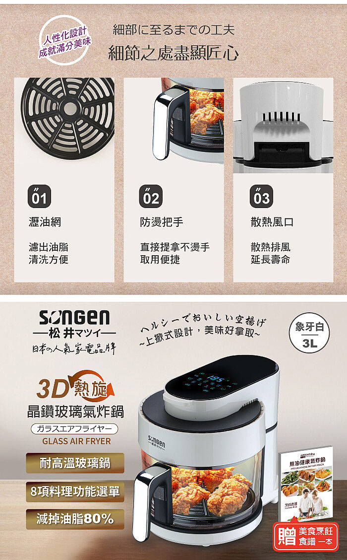 配 件:瀝油網、說明書、食譜