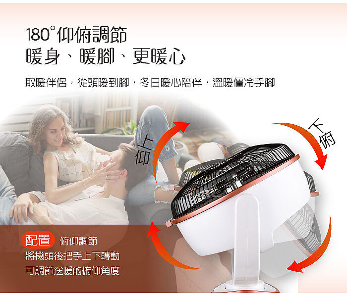 180度仰角調節,大範圍取暖