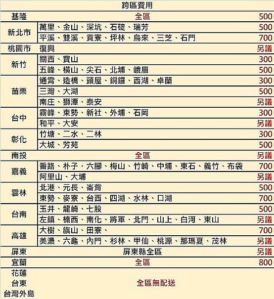5.樓層費用:若現場無法使用電梯配送,需現場支付樓層費用(一層樓$50~$200),若環境特殊需人工抬高搬運等,則由現場物流評估報價。