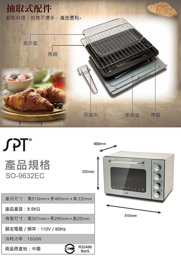 說明/保證書、烤盤、烤網、取盤夾、集屑盤、氣炸籃