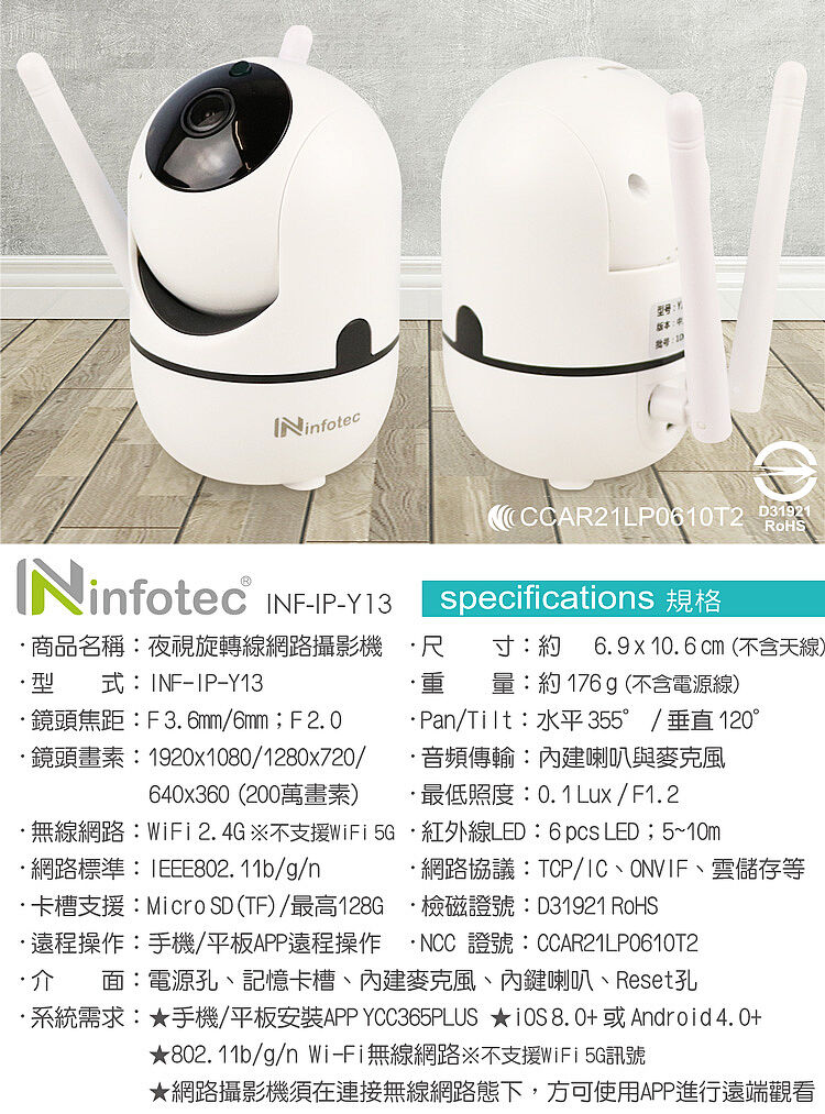 .產品名稱:Y13 夜視旋轉 無線網路攝影機