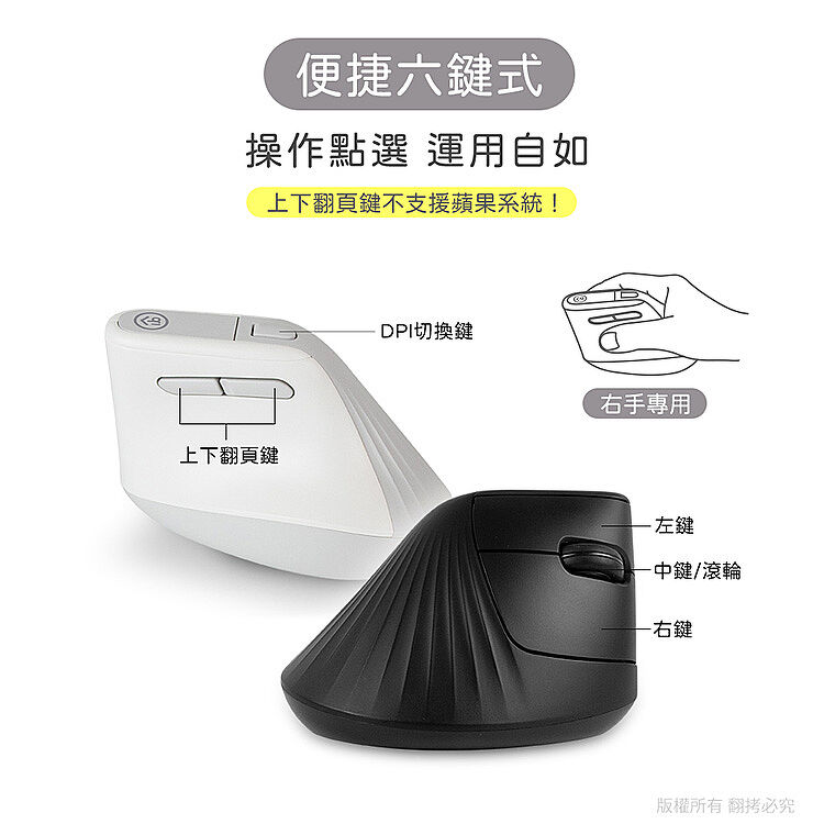 --直立手握式服貼手掌,三段式DPI,一鍵輕鬆切換--