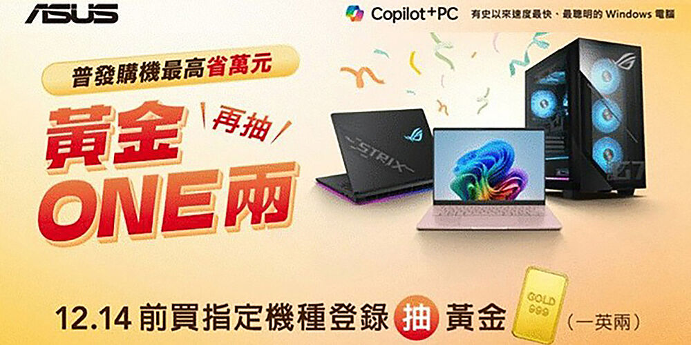 ASUS 普發購機最高省萬元 • 再抽黃金 ONE 兩