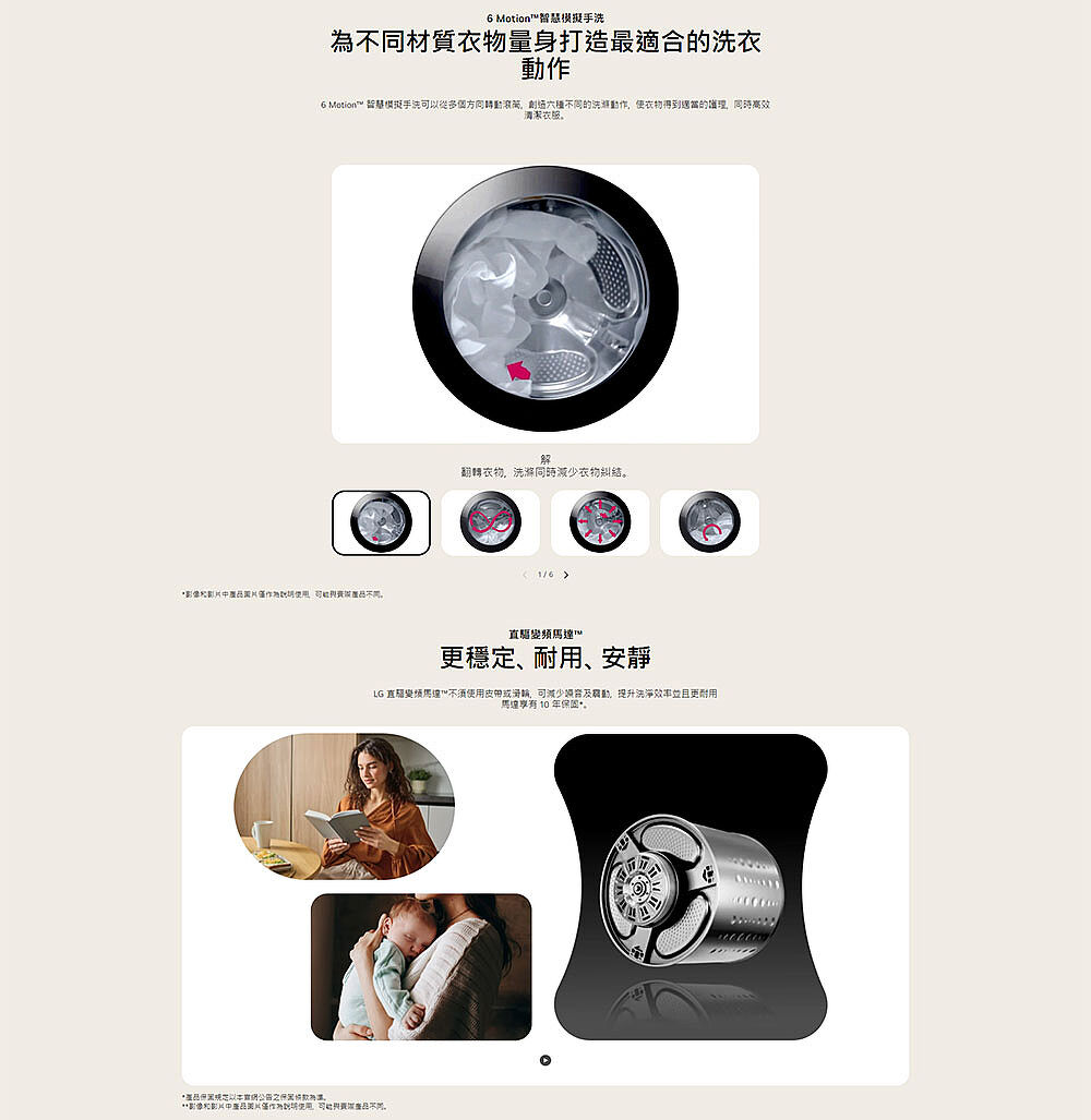 ◆ 6 Motion 智慧模擬手洗:深層洗淨 溫和呵護衣物