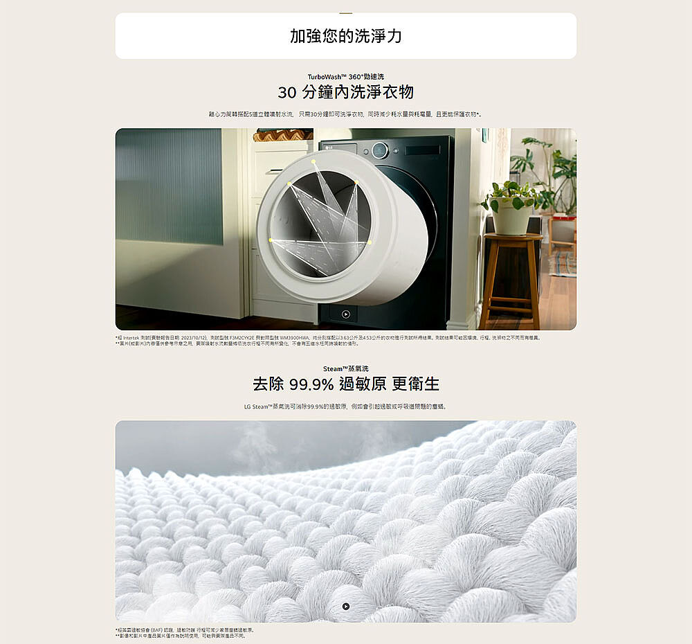 ◆ Steam™蒸氣洗:60°C天然蒸氣去除99.9%過敏原