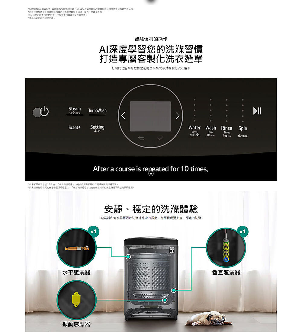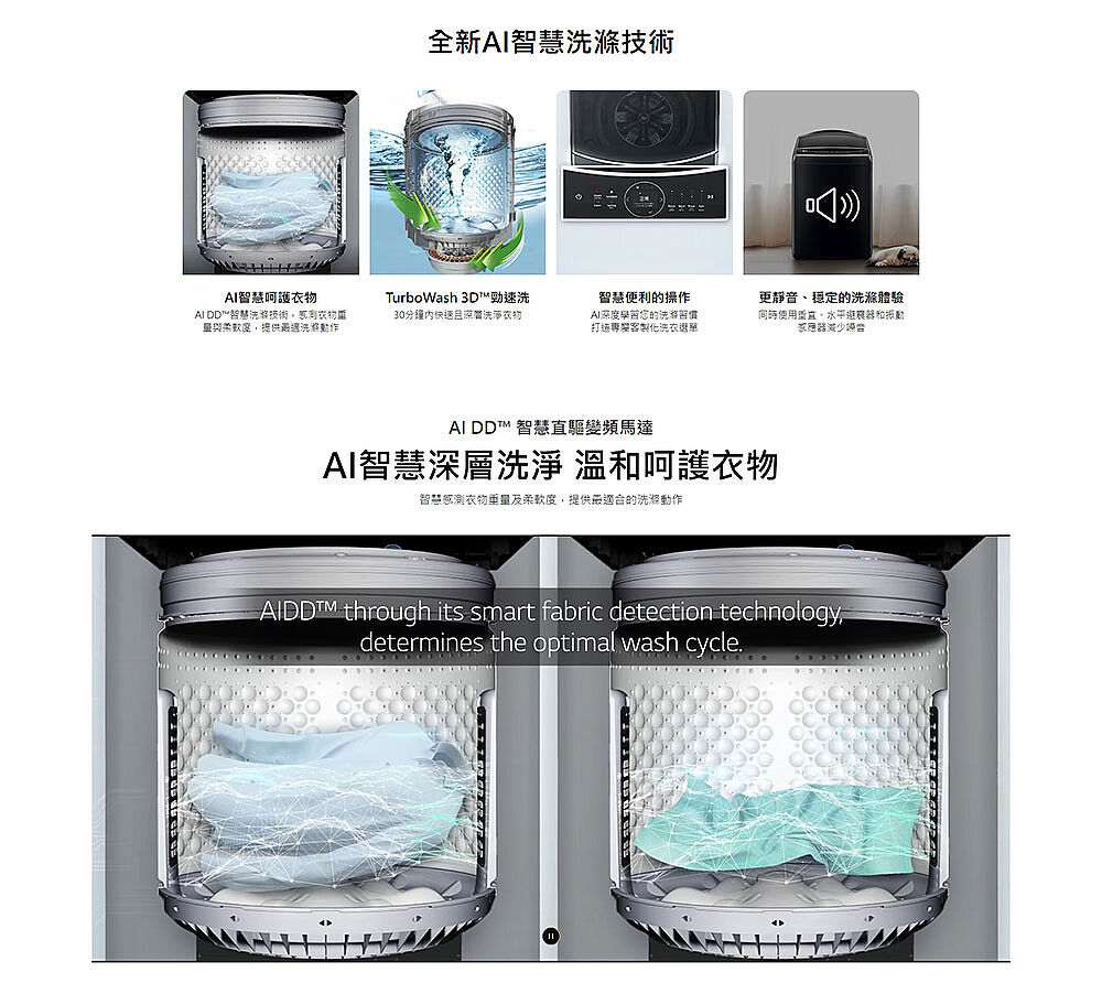 ◆ AI DD™ 智慧直驅變頻馬達:AI 智慧感測 提供最適洗程