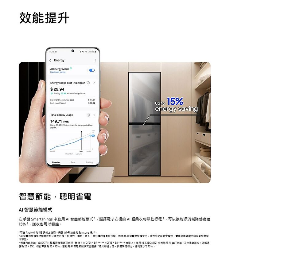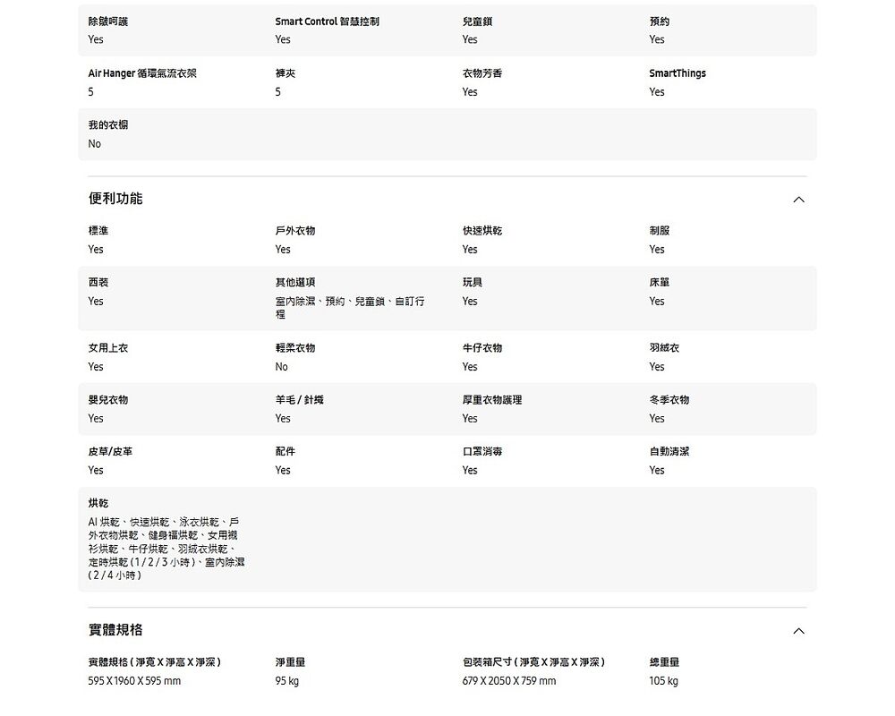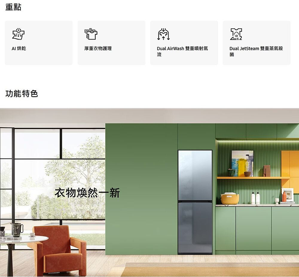 三星 BESPOKE AI 智慧電子衣櫥 DF24CB9900CR/TW,透過 AI 智慧烘乾功能,溫和呵護衣物。Dual JetSteam 雙重蒸氣和 Dual AirWash 雙重氣流,有效除菌並去除異味。Multi Hanger 多功能掛架方便護理各種衣物。AI 智慧節能模式聰明省電。透過 SmartThings App 即可遠端操控。夜幕黑時尚外觀,為您的居家空間增添質感。