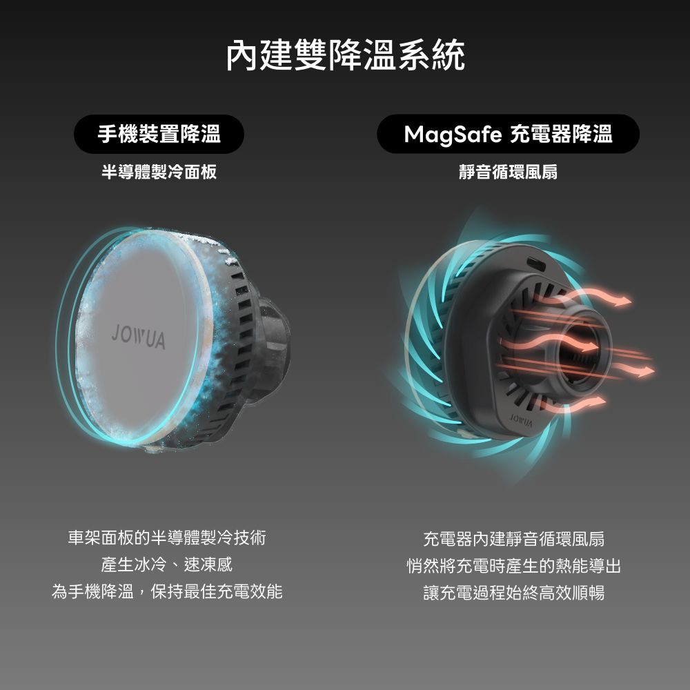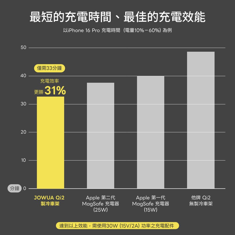❷ 為達Qi2 製冷無線充電車架之最佳充電效能,需請使用30W (15V/2A) 功率之充電配件