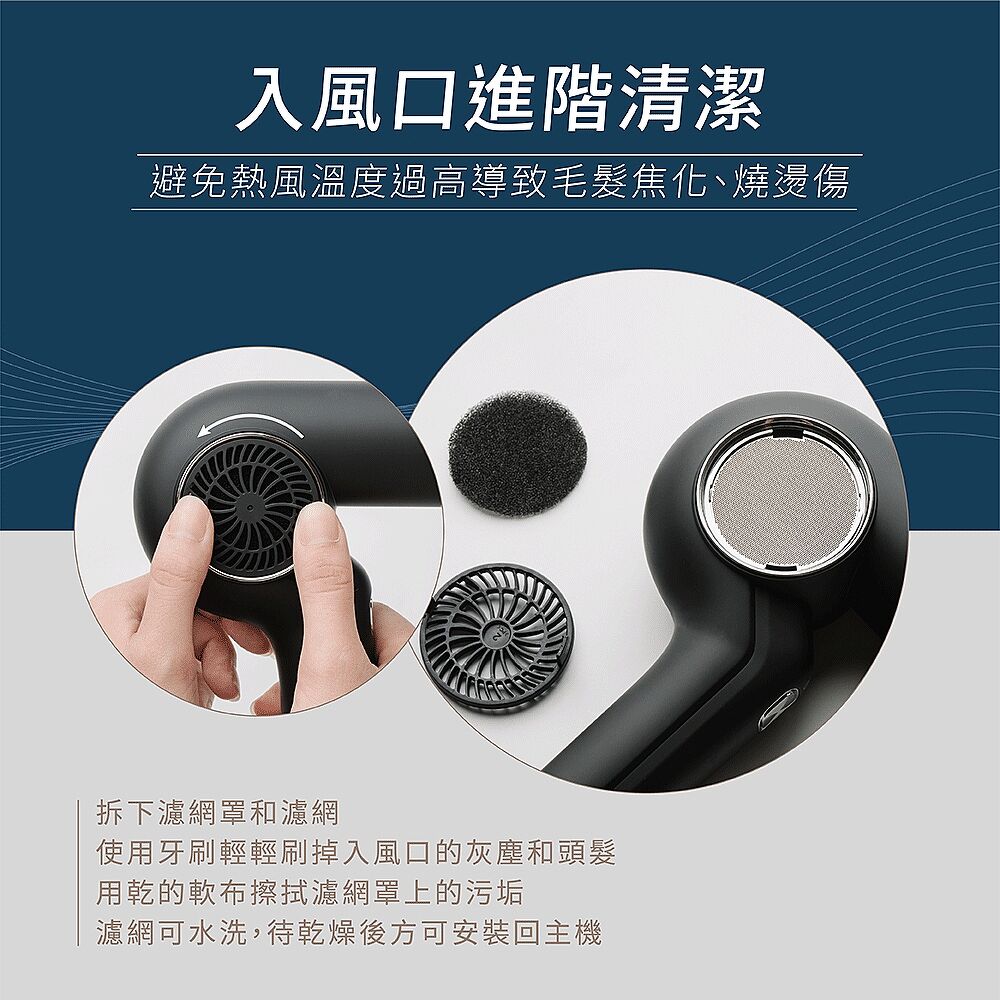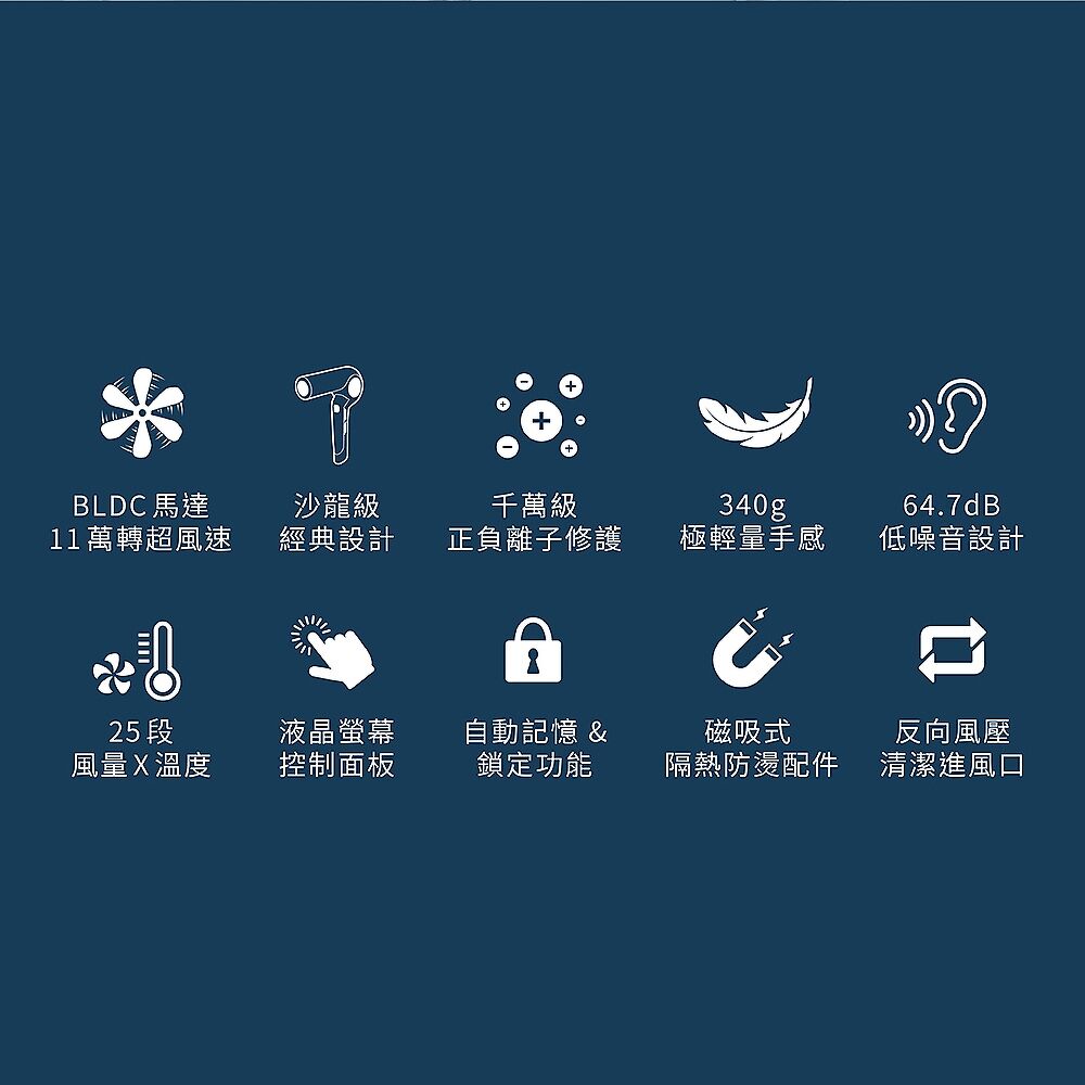110,000 rpm 高性能 中空設計 提升進風更速乾 3款吹嘴隨附烘罩
