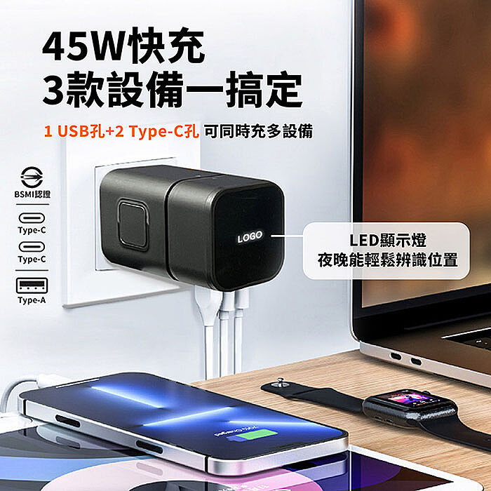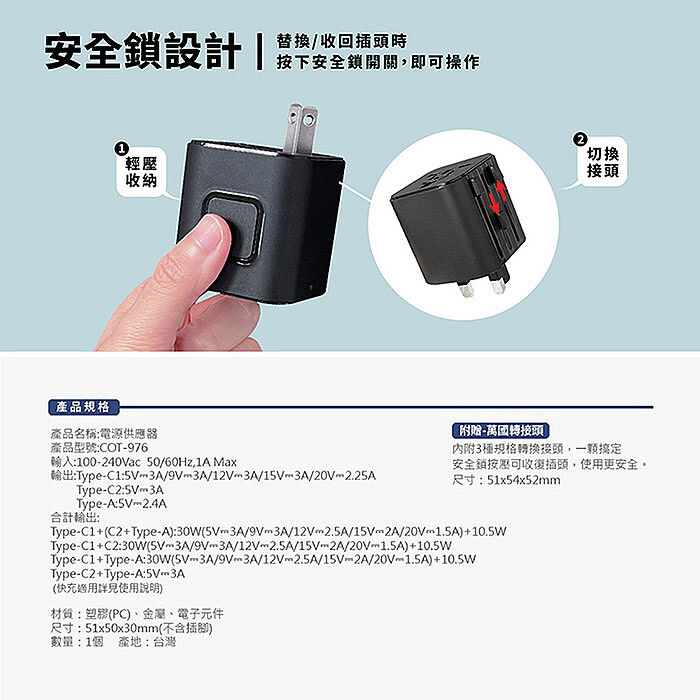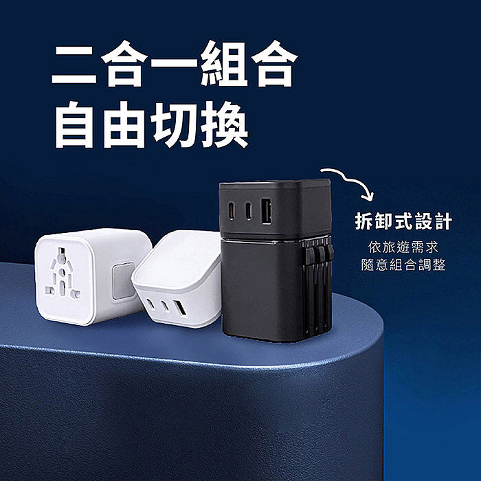 CITYBOSS 台灣製造 45W 2合1出國萬用充電器 全球通用萬能轉換插頭(2USB-C+1USB-A)