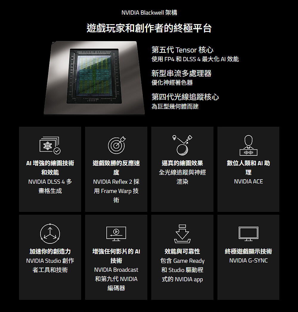 採用 NVIDIA Blackwell晶片架構與 DLSS4