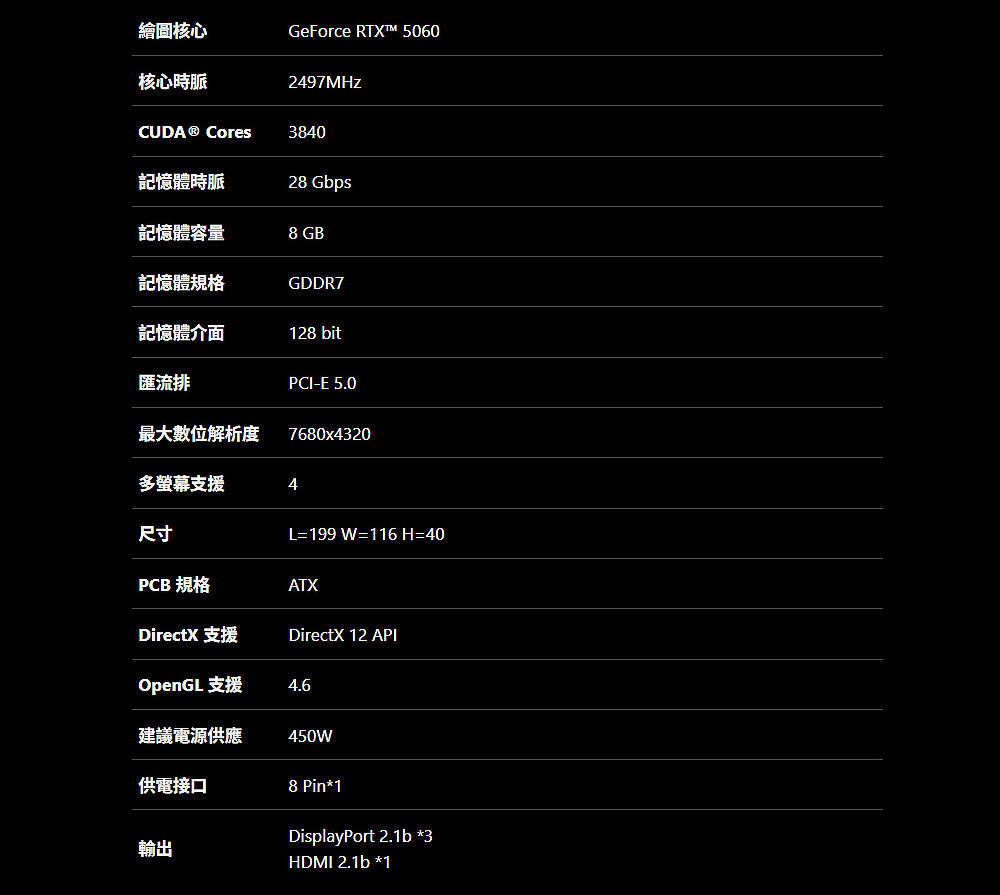 ※以上規格資料若有任何錯誤或原廠更動,以原廠所公佈資料為準。
