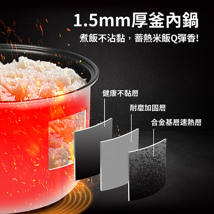 厚釜不沾內鍋,智能炊煮不黏鍋