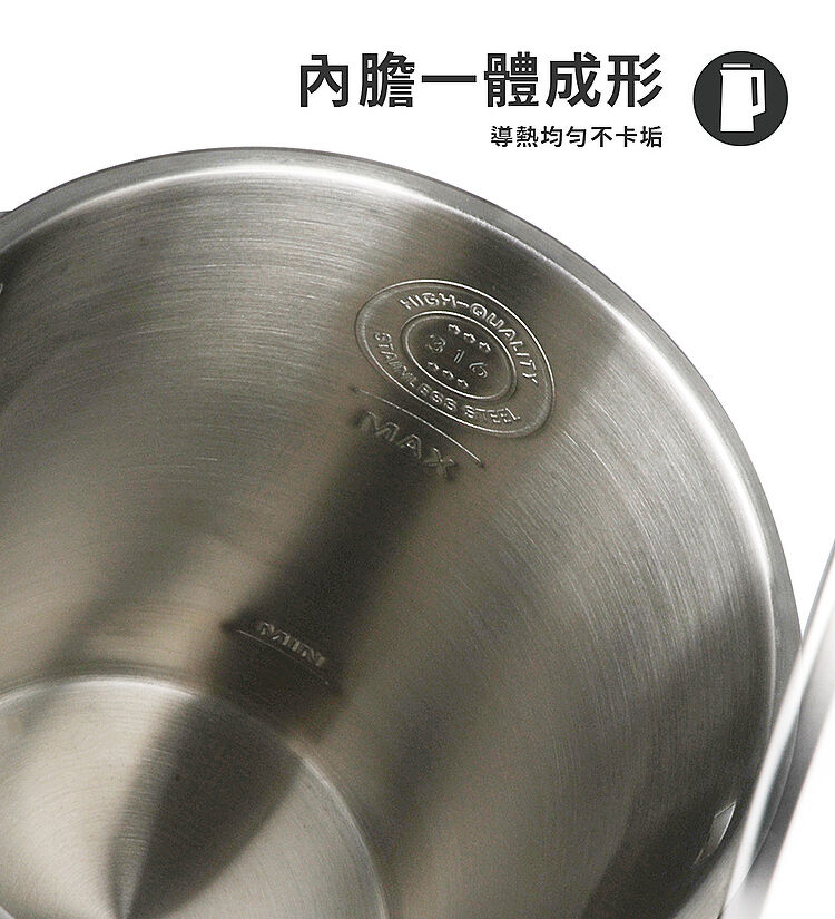 SUS304不鏽鋼壺身,典雅大方、衛生易清洗。