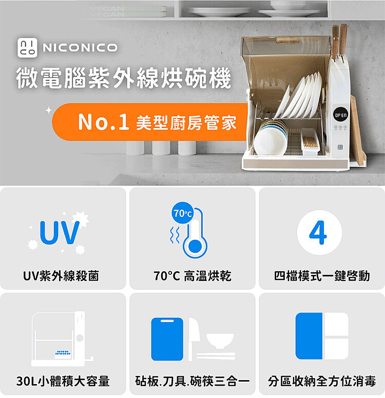 商品名稱:NICONICO微電腦UV紫外線殺菌烘碗機NI-K2016