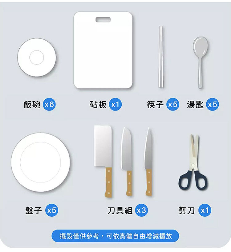 配件:主機x1、餐盤層架x1、筷子收納架x1、說明書x1、保固書x1