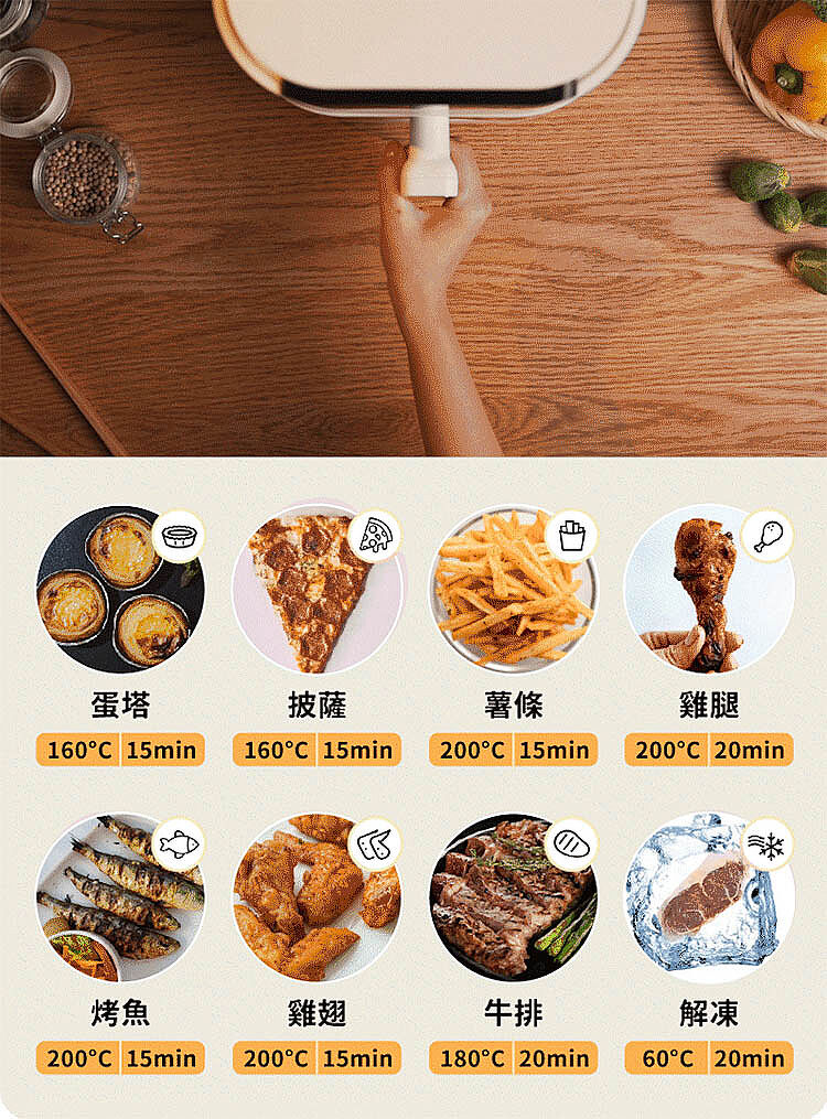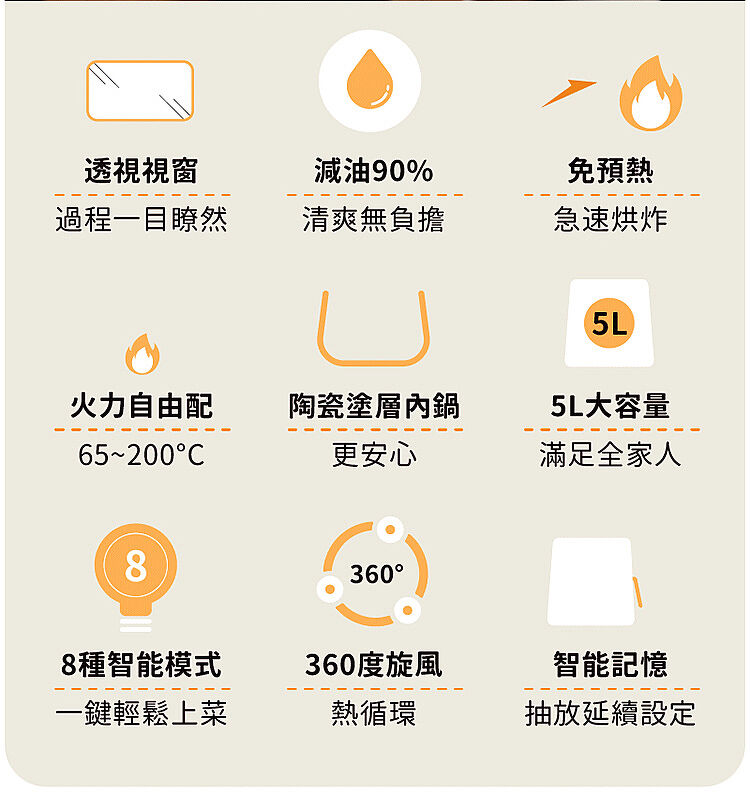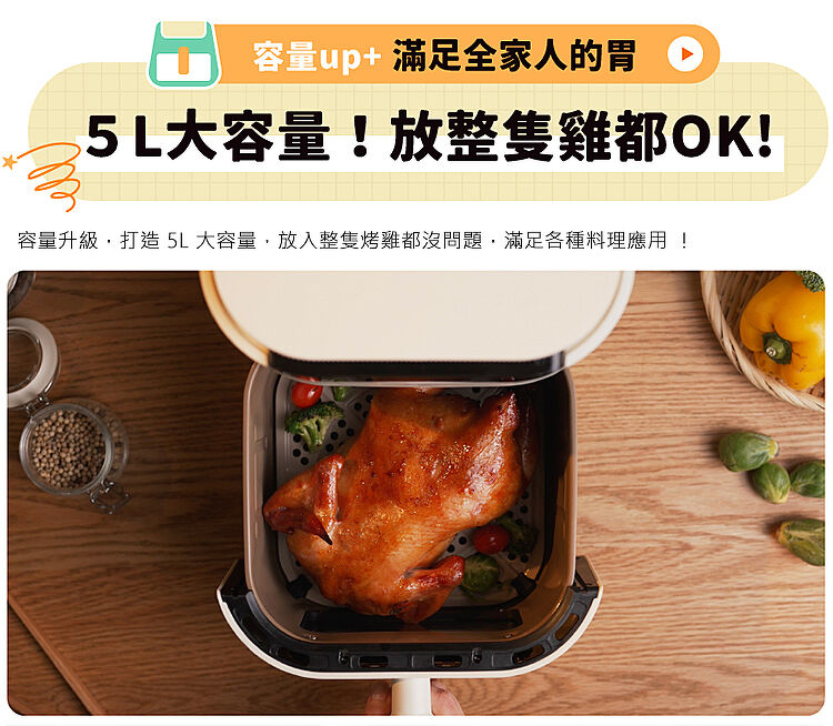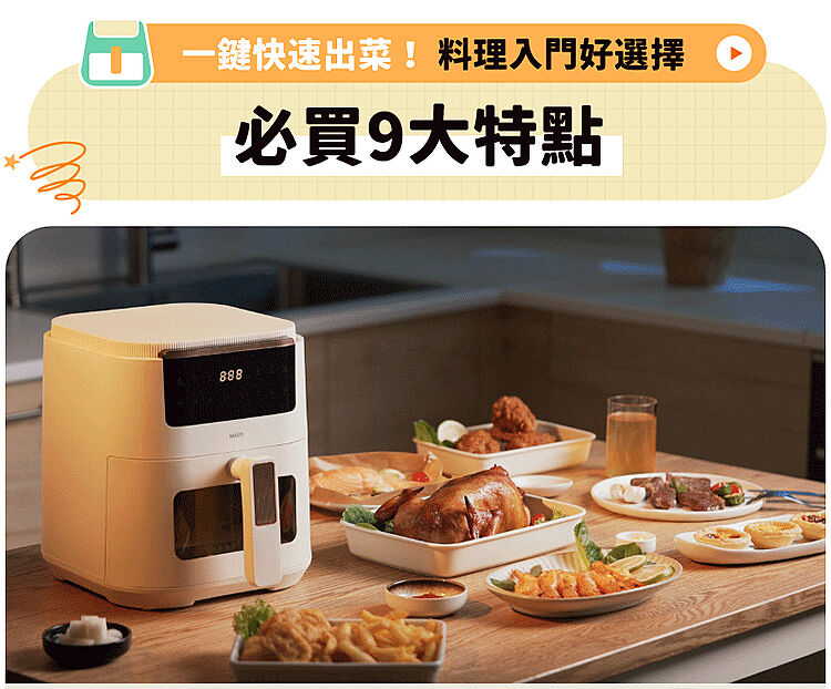 配件:主機x1、炸籃x1、烤架x1、說明書x1、保固書x1
