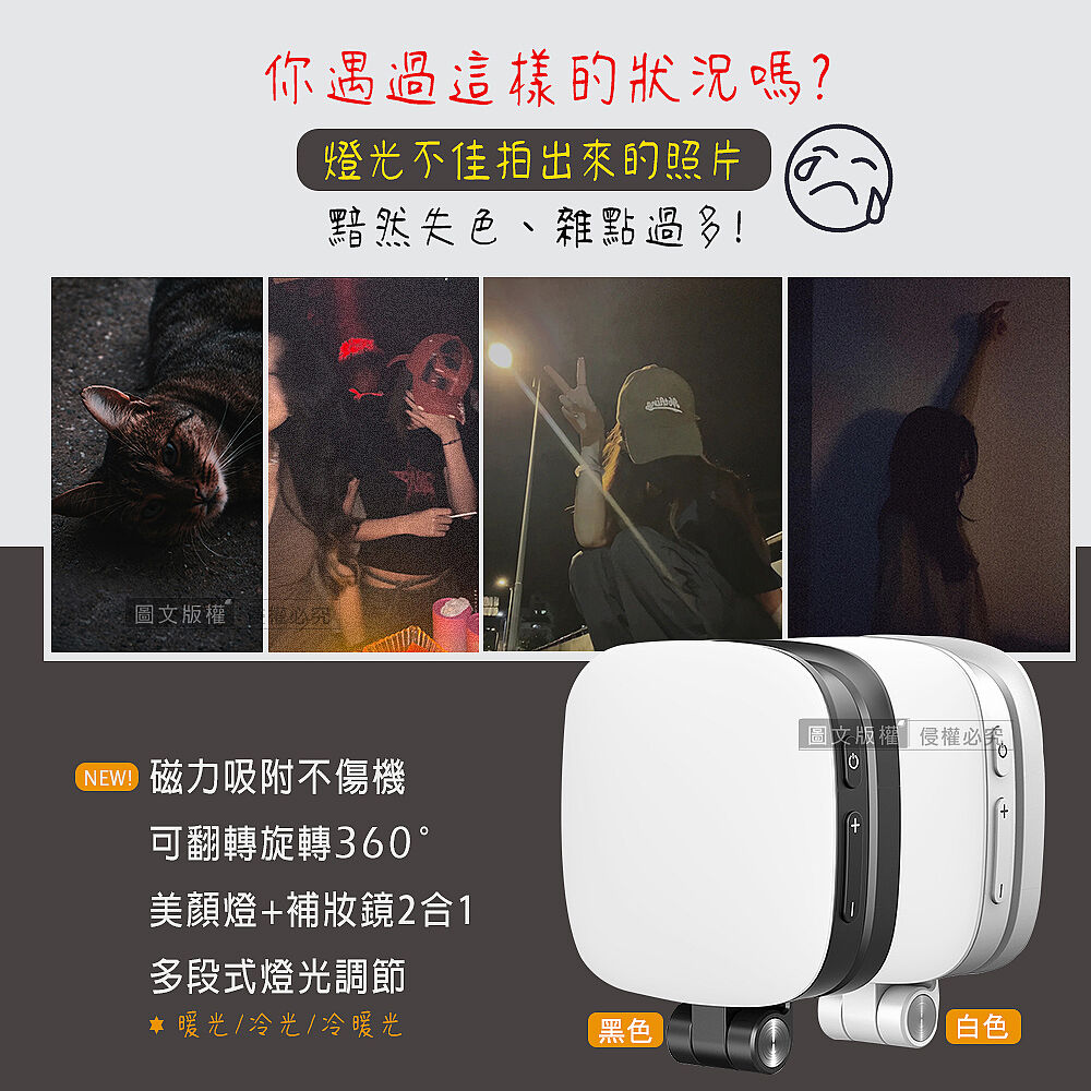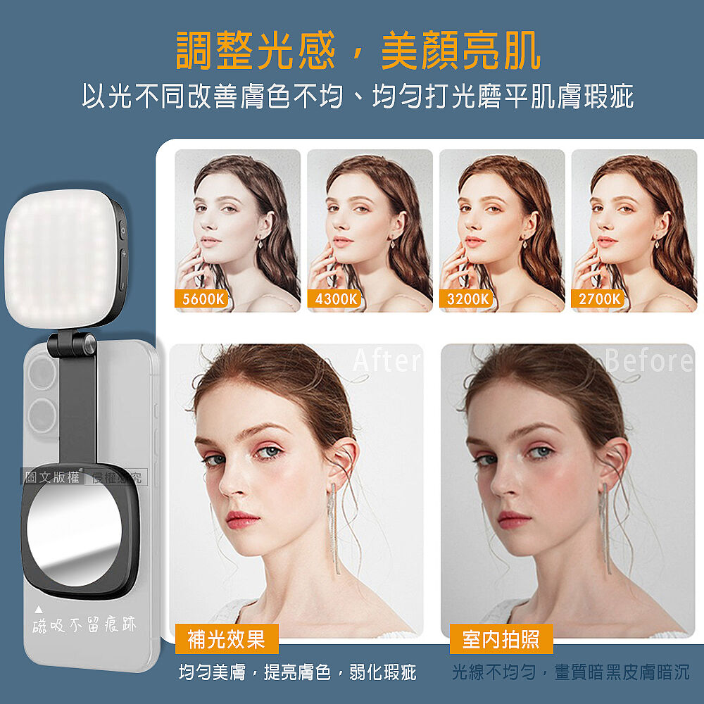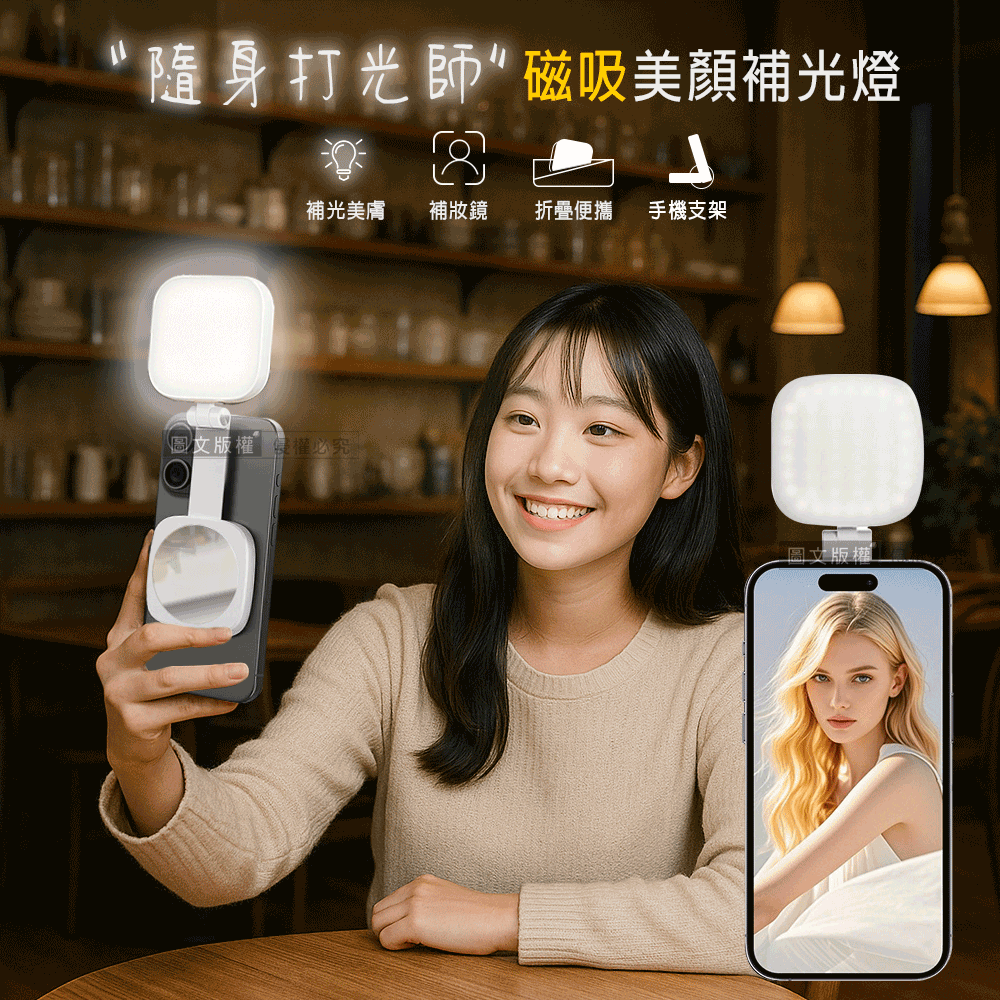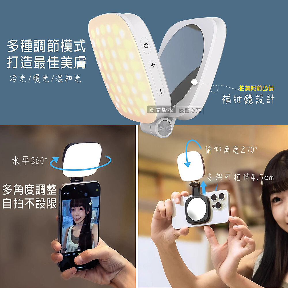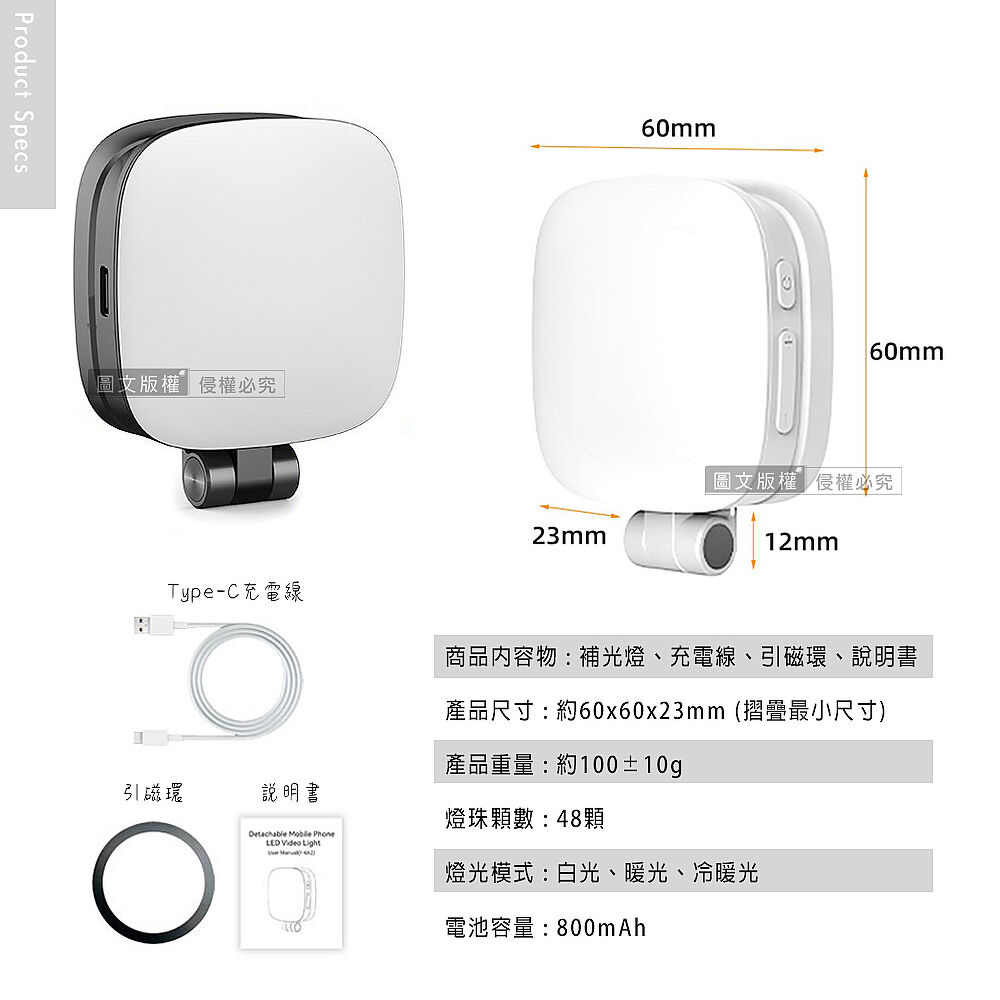商品內容:自拍補光燈、Type-C充電線、引磁環、說明書