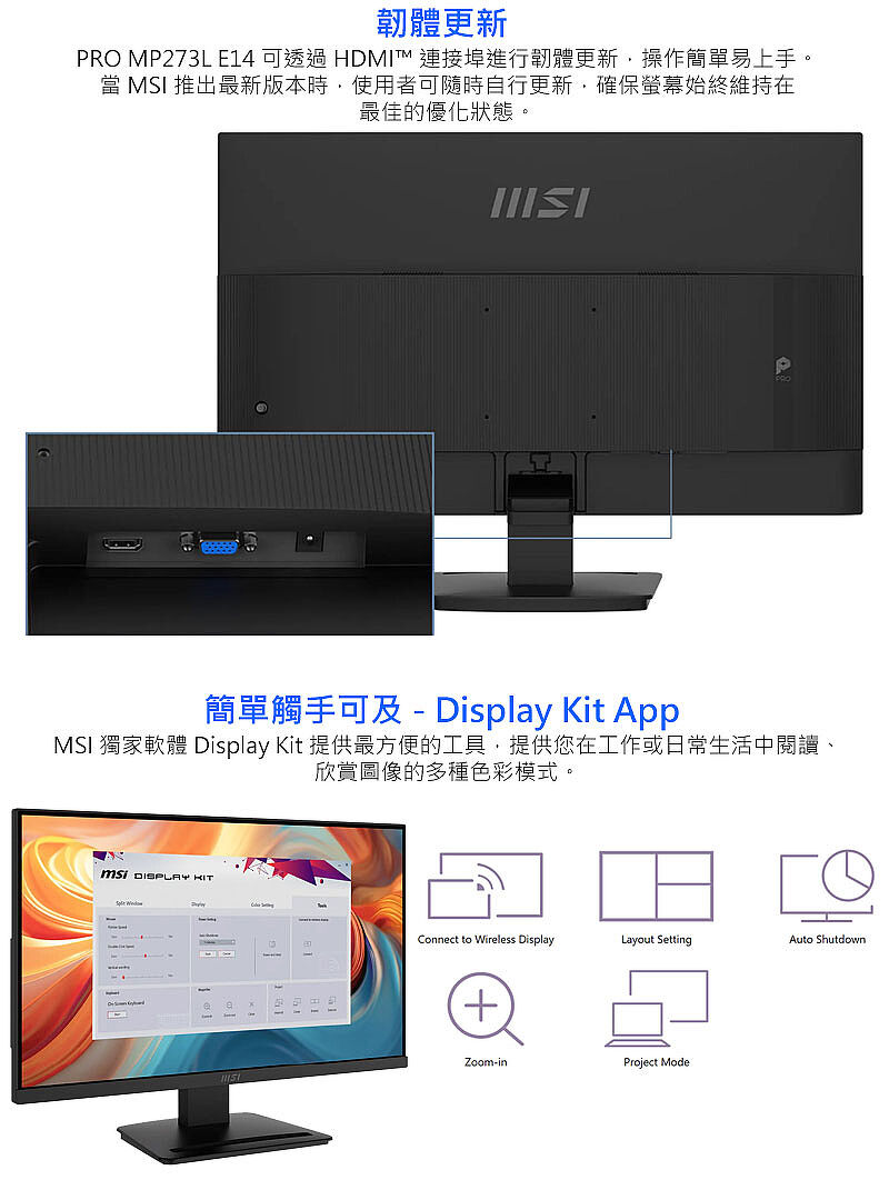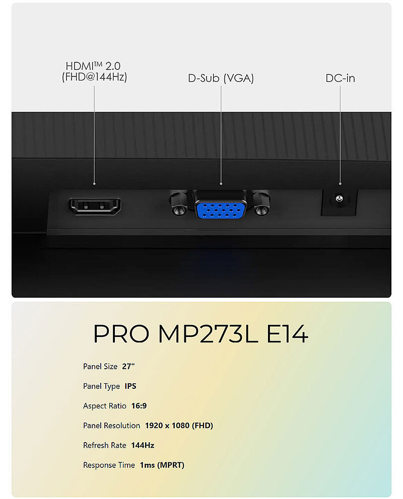 msi微星 PRO MP273L E14 27吋 平面螢幕(27"/1920x1080/16:9/144Hz/IPS)
