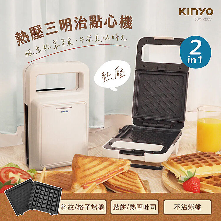 【KINYO】雙盤熱壓三明治點心機(SWM-2377)熱壓吐司機 鬆餅機 交換禮物 點心機 熱壓三明治機 吐司機