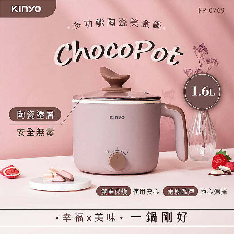 【KINYO】1.6L多功能陶瓷美食鍋(FP-0769)電火鍋 個人鍋 小火鍋 煮火鍋