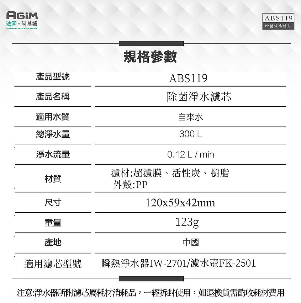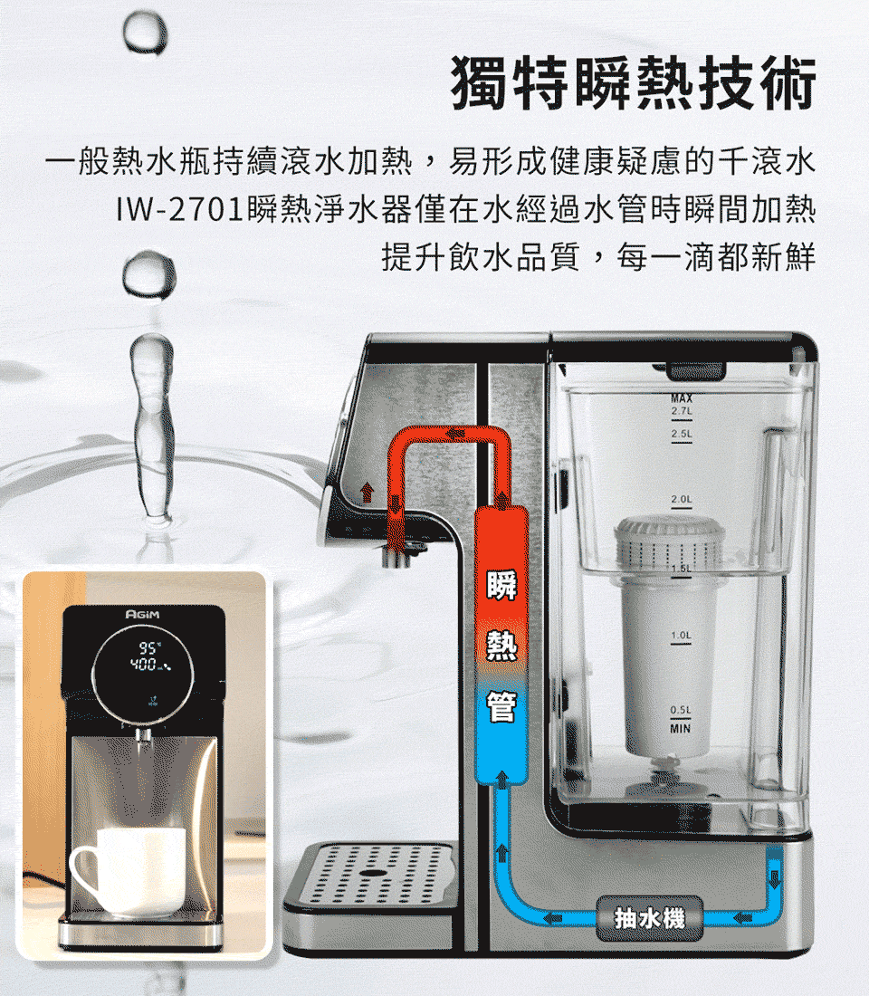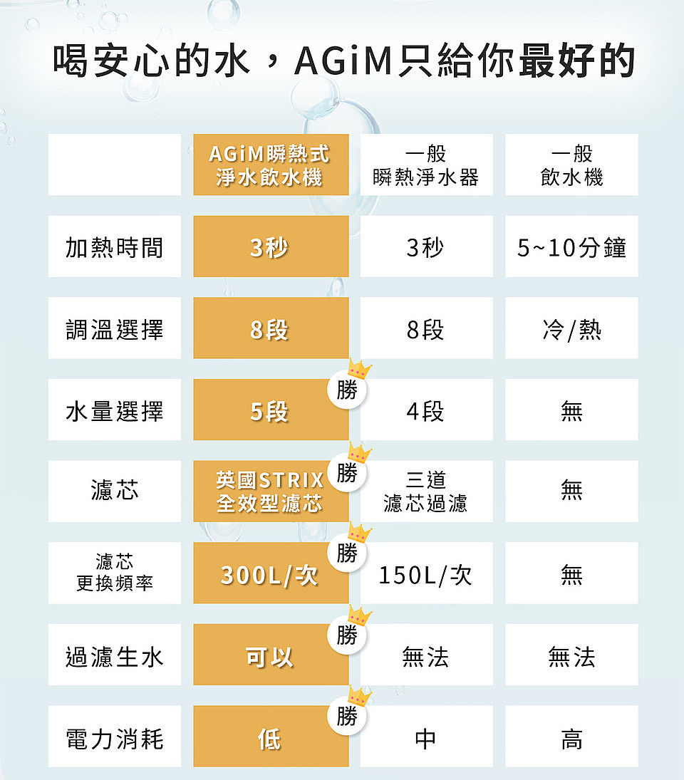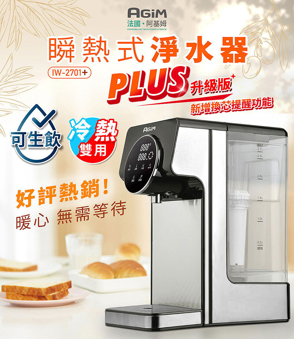 A:法國AGiM淨水器所使用的濾芯適用水質是自來水、純淨水,地下水怕有其他雜質,不建議過濾後直接生飲,最好的方式是煮沸放冷後,再放入瞬熱機,隨時想喝熱水3秒就有,買單機 有附1支濾芯,用過之後不必再買濾芯,直接當飲水機使用。