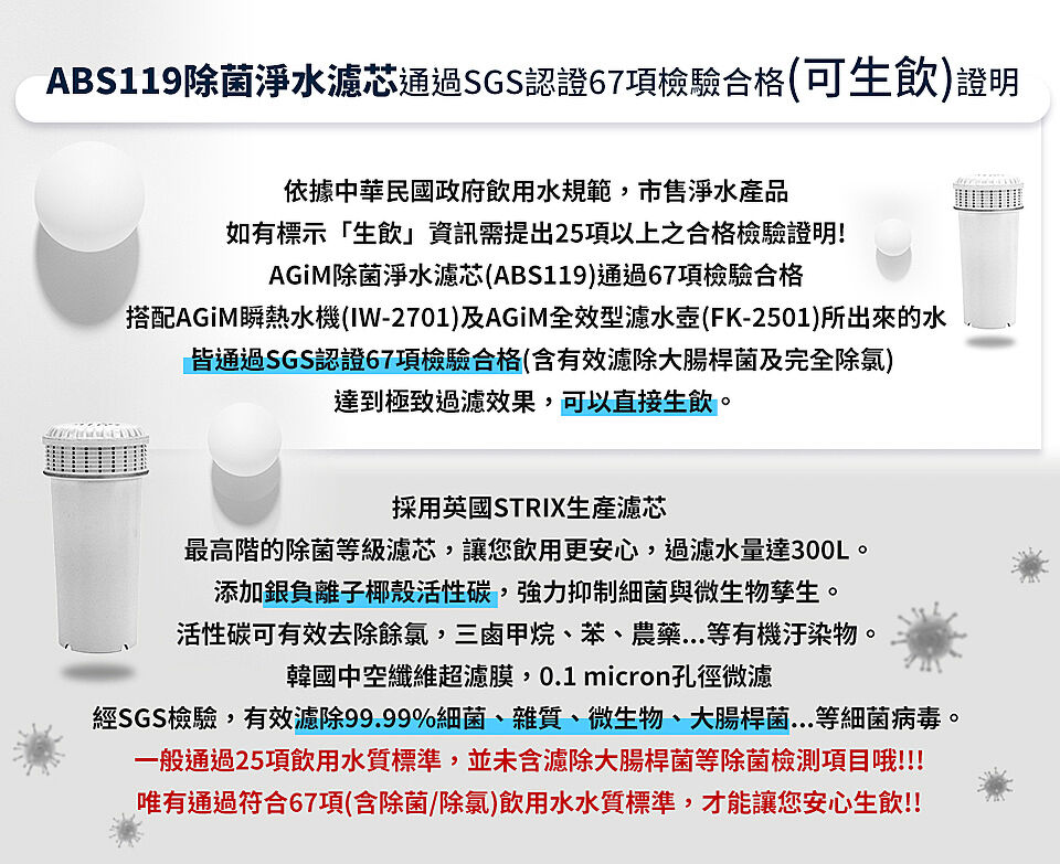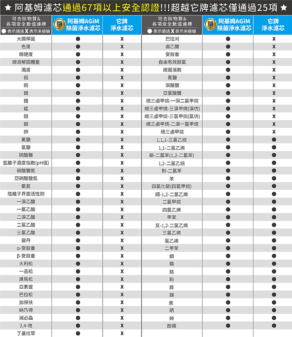 阿基姆除菌淨水濾芯經過以下細項檢驗合格可安心 生飲