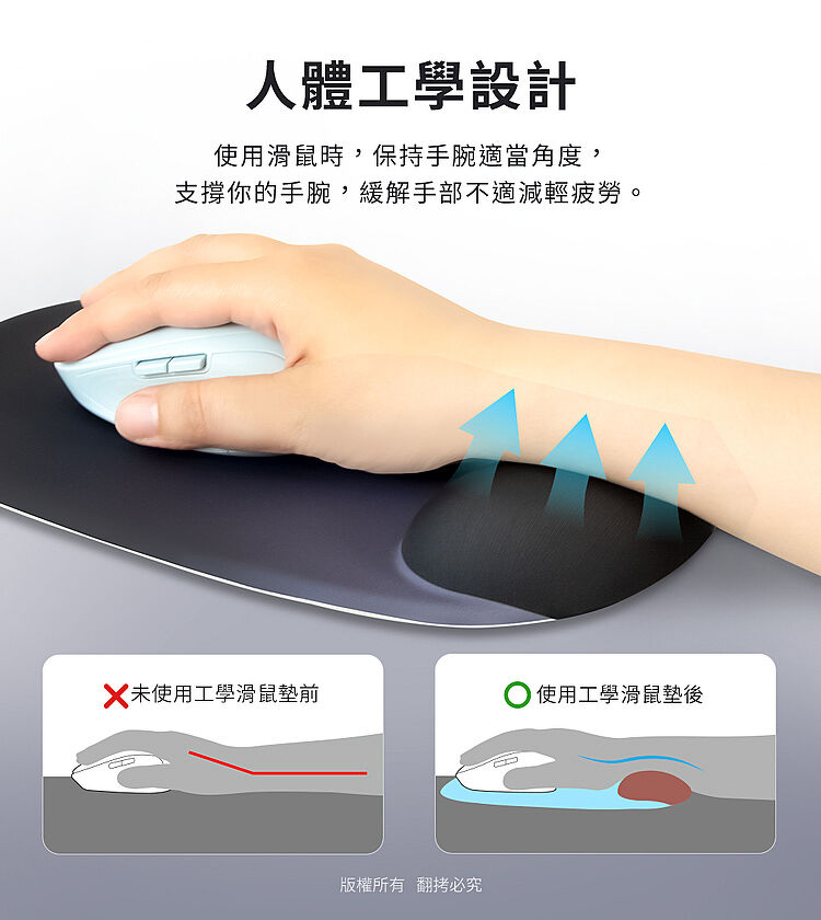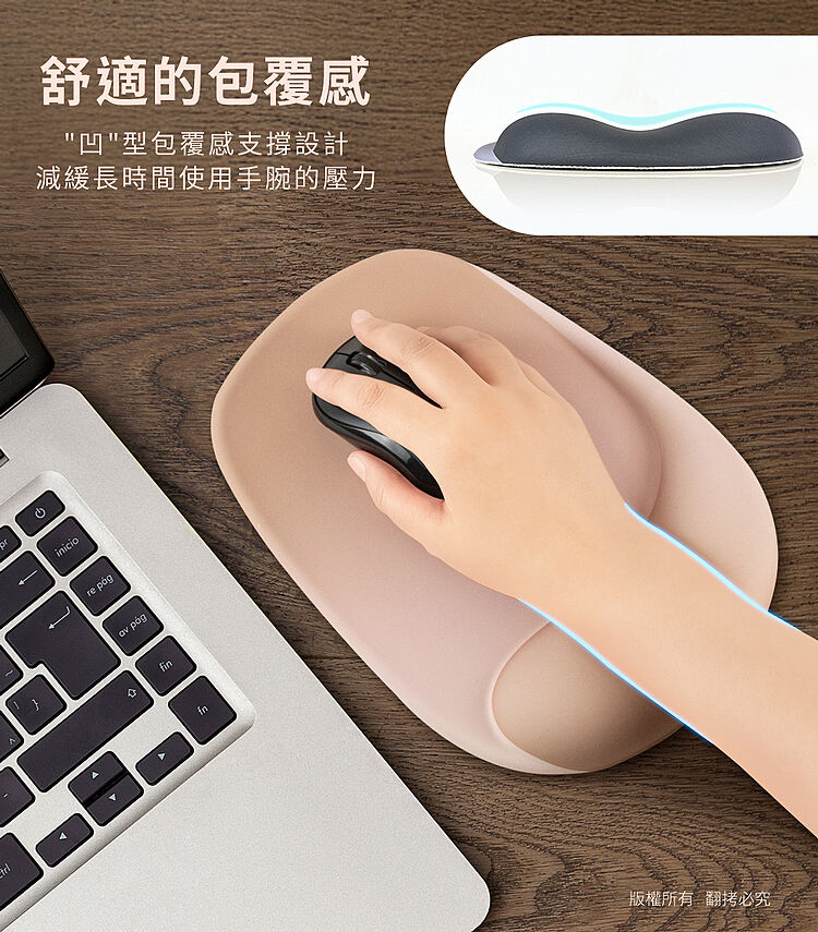 人體工學貼合手腕設計,柔軟支撐手腕,有效舒緩壓力,