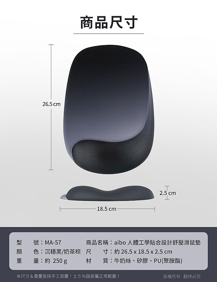 .商品名稱:aibo 人體工學 曲線貼合設計 舒壓滑鼠墊